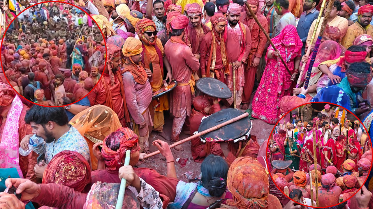 20 लाख भक्त, ढोल-नगाड़े… बरसाना की लट्ठमार होली, सखियों ने पुलिसवालों को भी मारे लट्ठ- Photos