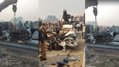 कंटेनर को टक्कर मारते ही कार के उड़ गए परखच्चे, पिता -बेटे समेत 4 की मौत