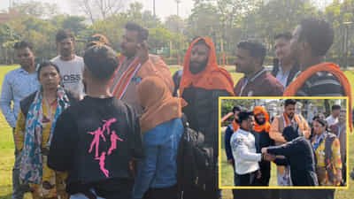 वैलेंटाइन डे पर अंतरराष्ट्रीय बजरंग दल के कार्यकर्ता पार्कों में गश्त करते नजर आएं. पार्कों में बैठे युवक-युवतियों से पूछताछ की, कुछ मामलों में परिजनों को सूचित किया गया, तो एक जोड़े से राखी भी बंधवाई गई. यह घटना सोशल मीडिया पर वायरल हो रहा है, जिसने नई बहस छेड़ दी है.