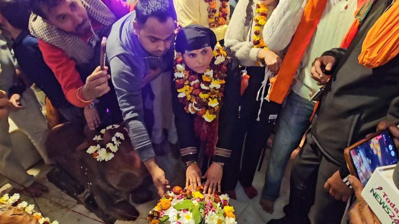 ग्रेटर नोएडा में मुस्लिम युवती उष्मा खान ने अपने प्रेम विवाह की मन्नत पूरी होने के लिए महाशिवरात्रि पर भोले बाबा को कांवड़ चढ़ाई. वह हिंदू युवक से शादी करना चाहती हैं. यह अंतरधार्मिक प्रेम और शिव में उनकी अटूट आस्था का प्रतीक बन गया है. सोशल मीडिया पर यह वीडियो खूब वायरल हो रहा है, जिसने समाज में नई बहस छेड़ दी है.