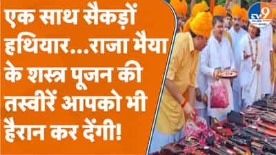 एक साथ सैकड़ों हथियार… राजा भैया के शस्त्र पूजन की तस्वीरें आपको भी हैरान कर देंगी!