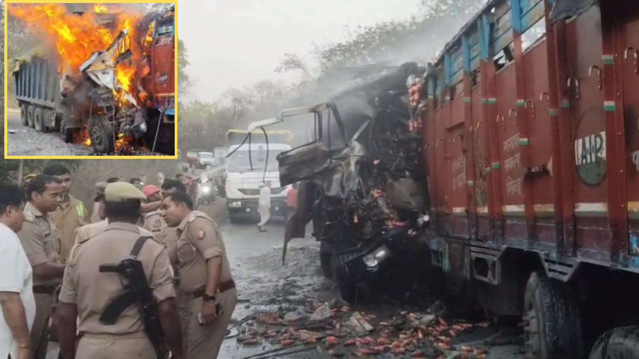 सोनभद्र के हाथीनाला में भीषण हादसा, ट्रकों की टक्कर के बाद लगी आग, 2 जिंदा जले