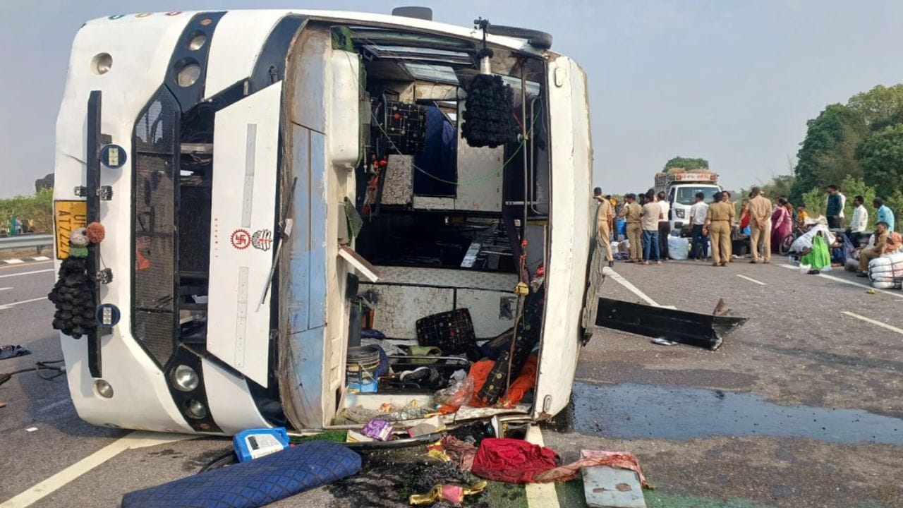 सुल्तानपुर में हादसा: लुधियाना से आ रही बस पूर्वांचल एक्सप्रेस-वे पर पलटी, 34 यात्री घायल