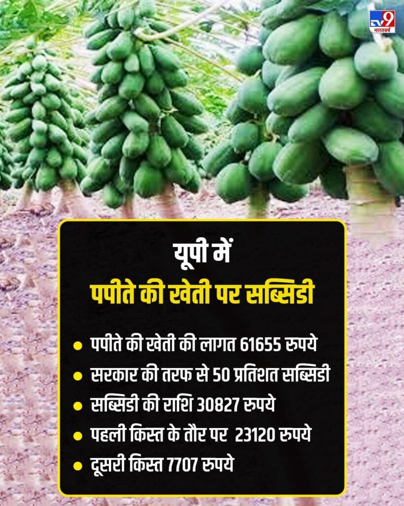 यूपी में पपीते की खेती करने पर किसानों को 30 हजार रुपये मिलते हैं. ये राशि 2 किस्तों में दी जाती है. पहली किस्त खेती के पहले साल में 23120 रुपये के तौर पर दी जाती है. वहीं, दूसरी किस्त 7707 रुपये दूसरे साल में दी जाती है.