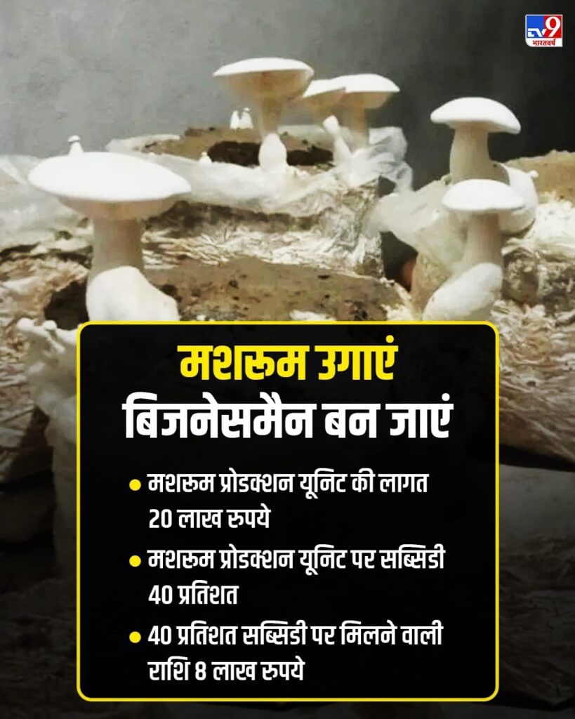 यूपी सरकार ने मशरूम उत्पादन यूनिट लगाने के लिए 8 लाख रुपये की लागत रखी है. इसपर सरकार की तरफ से 40 प्रतिशत अनुदान दिया जा रहा है. इस हिसाब को किसान को इस काम पर तकरीबन 8 लाख रुपये दिए जाते हैं.