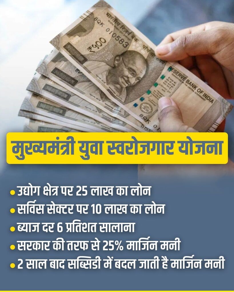 मुख्यमंत्री युवा स्वरोजगार योजना प्रदेश के युवाओं के खुद का रोजगार शुरू करने के लिए प्रोत्साहित करने वाली योजना है. इसके तहत सरकार की तरफ से युवाओं को बिजनेस शुरू करने के लिए आर्थिक सहायता उपलब्ध कराई जाती है.