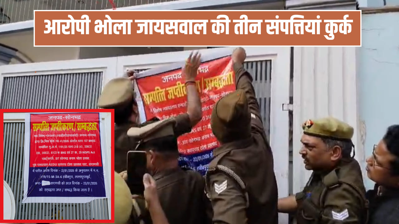 सोनभद्र SIT ने अवैध कोडीन कफ सिरप मामले में बड़ी कार्रवाई की है. मुख्य आरोपी भोला प्रसाद जायसवाल की ₹28.5 करोड़ से अधिक की तीन संपत्तियां कुर्क की. भोला जायसवाल को विदेश भागते समय कोलकाता से गिरफ्तार किया गया था. जबकि उसका बेटा शुभम जायसवाल अभी भी फरार चला रहा है.