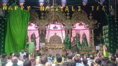 ठाकुर जी आज स्वर्णजड़ित हिंडोले पर विराजमान होकर भक्तों के बीच हैं. भक्त हिंडोले को हिलाकर आनंद की अनुभूति कर रहे हैं. इस मौके पर लोग ठाकुर जी के जयकारे लगाते हुए एक दूसरे को बधाई दे रहे हैं.