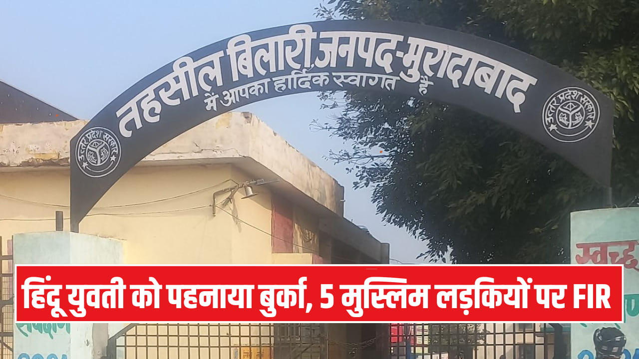 मुरादाबाद में एक हिन्दू युवती को जबरन बुर्का पहनाया गया, जब वह सहेलियों के साथ ट्यूशन पढ़ने जा रही थी. इस दौरान उसपर धर्मांतरण का दबाव भी बनाने का आरोप है. पुलिस ने पांच मुस्लिम लड़कियों के खिलाफ FIR दर्ज की गई है. घटना का वीडियो वायरल है, पुलिस मामले की जांच में जुटी है.