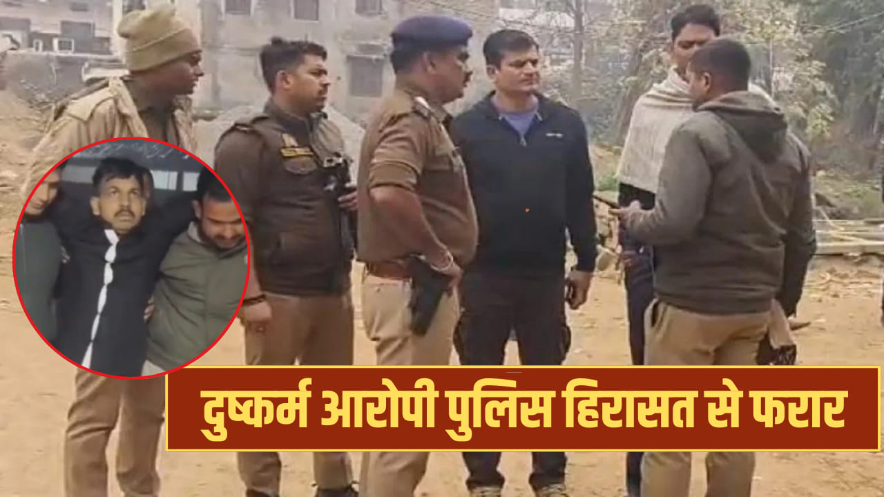 प्रतापगढ़ में दुष्कर्म के प्रयास का आरोपी पुलिस हिरासत से फरार हो गया. आरोपी को मुठभेड़ में घायल होने के बाद मेडिकल कॉलेज में भर्ती कराया गया था, जहां चार पुलिसकर्मी उसकी निगरानी कर रहे थे. पुलिसकर्मियों की लापरवाही के कारण आरोपी चकमा देकर भाग निकला.