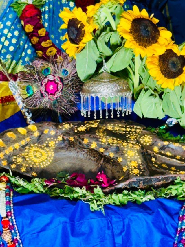 यह चारों चिन्ह की शिला भगवान कृष्ण ने सनातन गोस्वामी को दी और उनसे कहा कि कलयुग में जो भी भक्त इस मंदिर चार बार राधा दामोदर भगवान की परिक्रमा करेगा तो उसे गोवर्धन की परिक्रमा का फल मिलेगा.